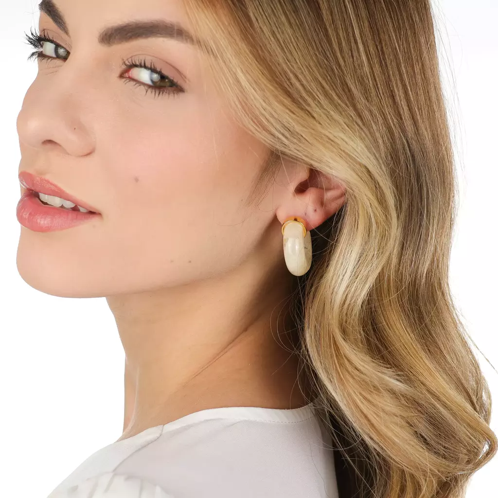 Uma peça que mistura o luxo do ouro com o moderno acetato italiano, conferindo um charme único a peça. O conforto desta argola é excepcional, graças ao seu design cuidadosamente projetado capaz de transformar qualquer visual e adicionando um toque de autenticidade.