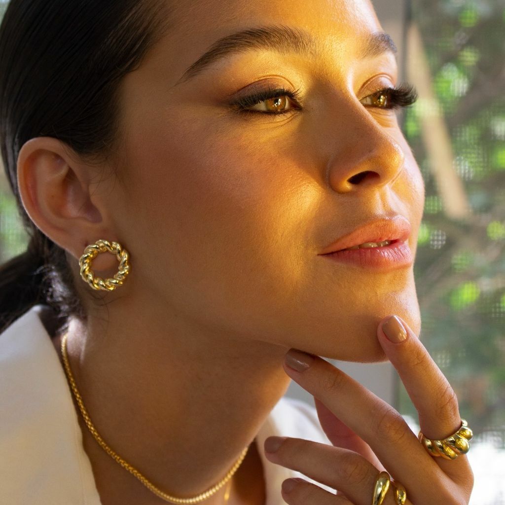 O brinco guirlanda é aquele famoso simples nada básico. Com design elegante e minimalista ele traz um charme para sua produção e dá um toque de modernidade ao look.